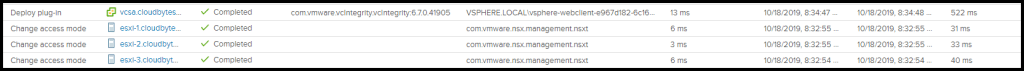 While the install is taking place, if you navigate to your vCenter server Recent Tasks pane you will see the ESXi hosts being prepared.