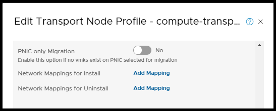 Note: If you choose to map vmkernel adapters to a segment on an N-VDS make sure you configure the uninstallation mapping in case you need to remove a host from being a transport node in the future. This will prevent isolation.