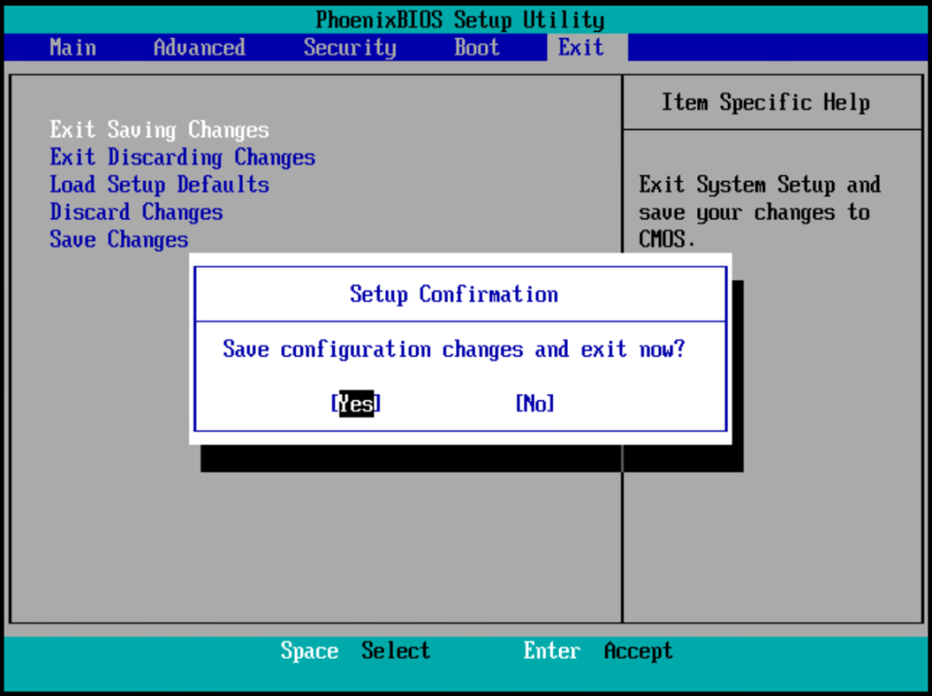 7. When done, hit <F10> or navigate to Exit > Exit Saving Changes.