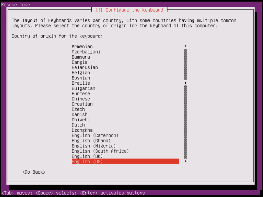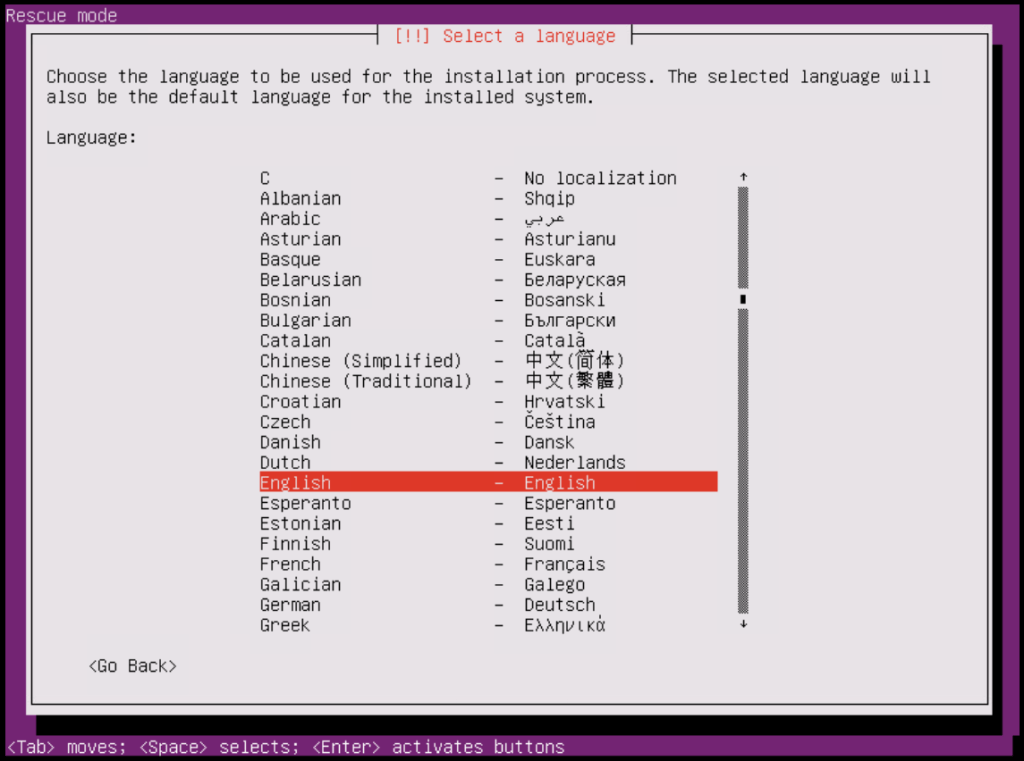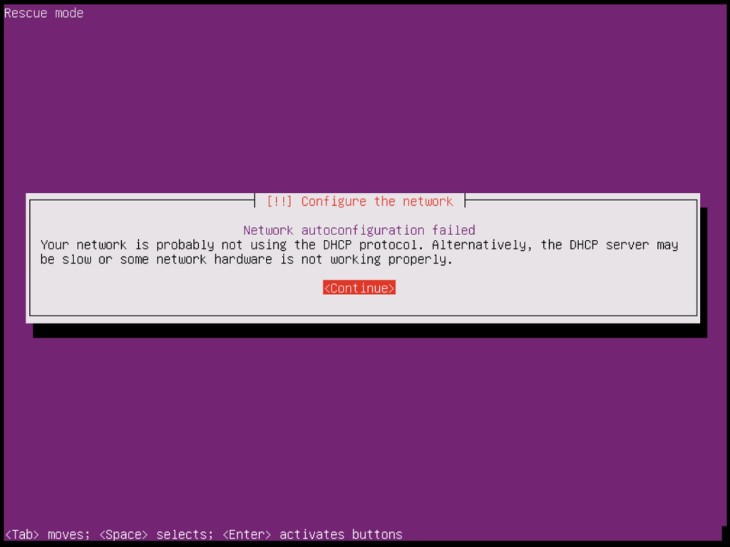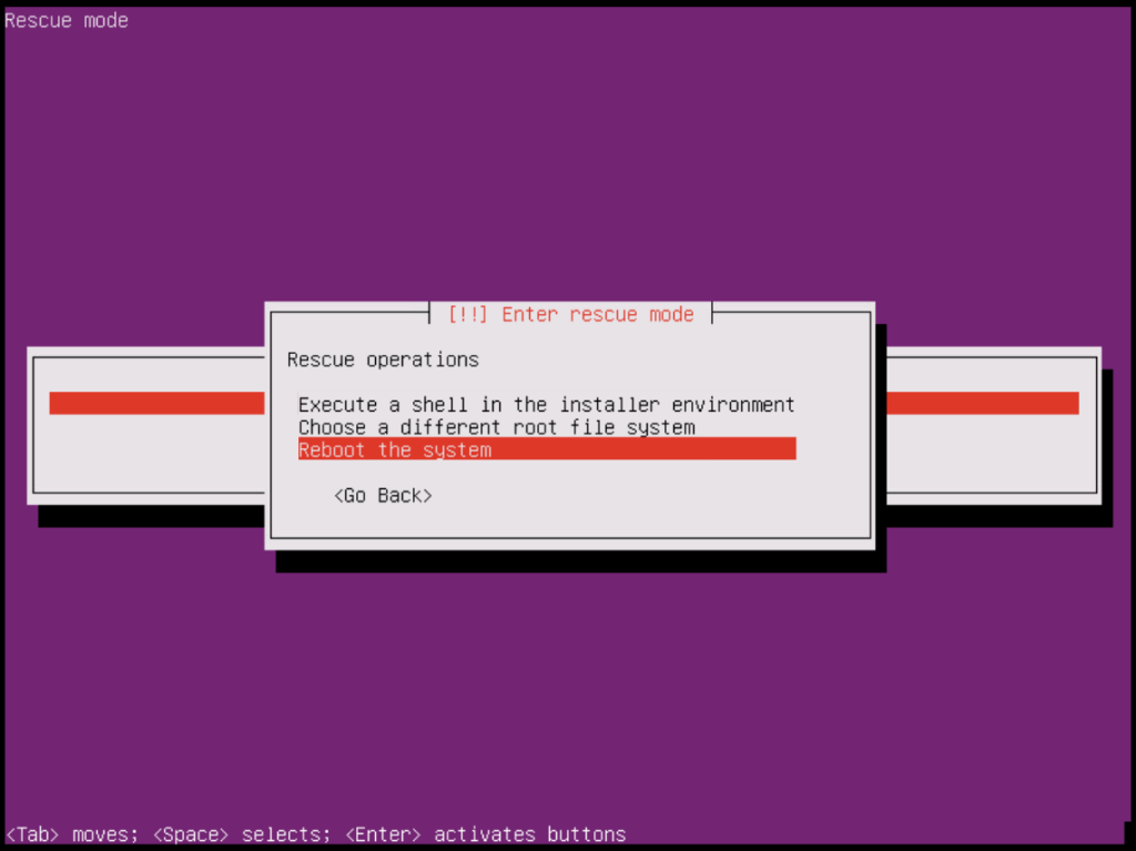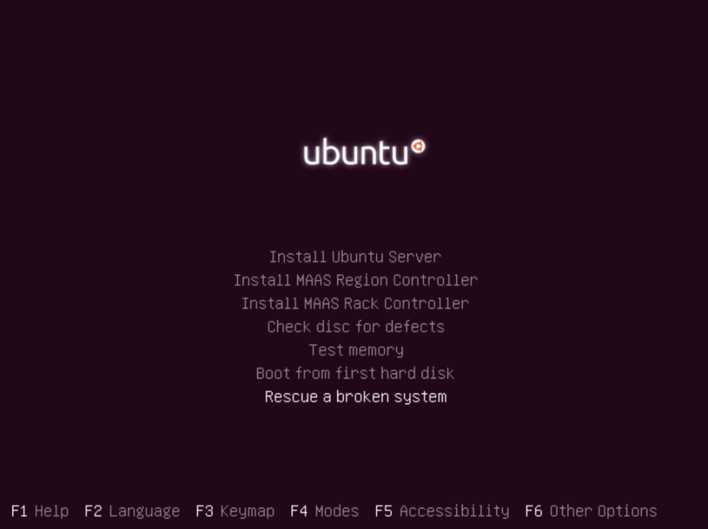 8. Select ‘Rescue a broken system‘ and hit <ENTER>