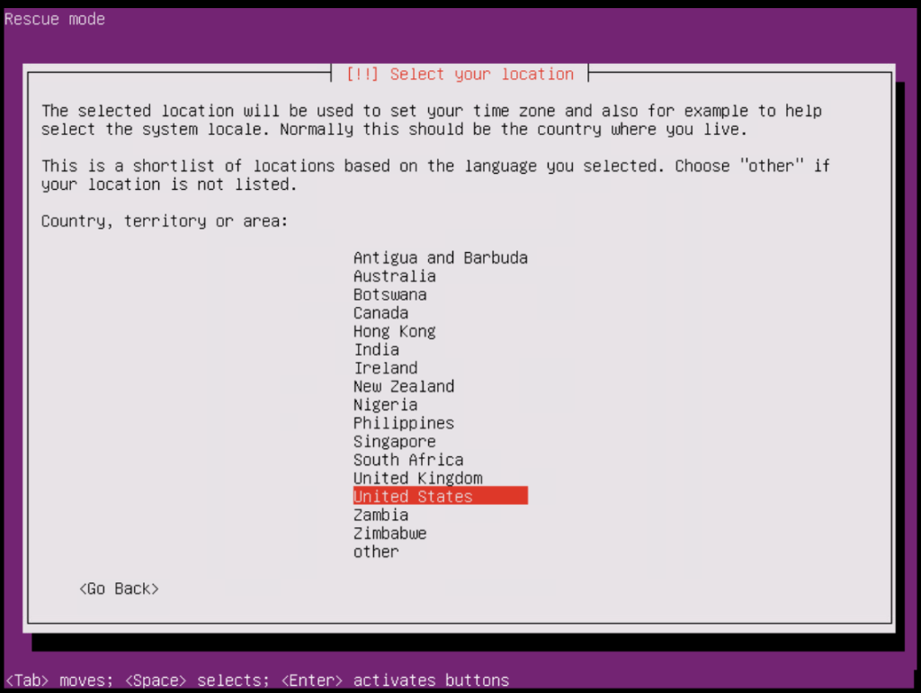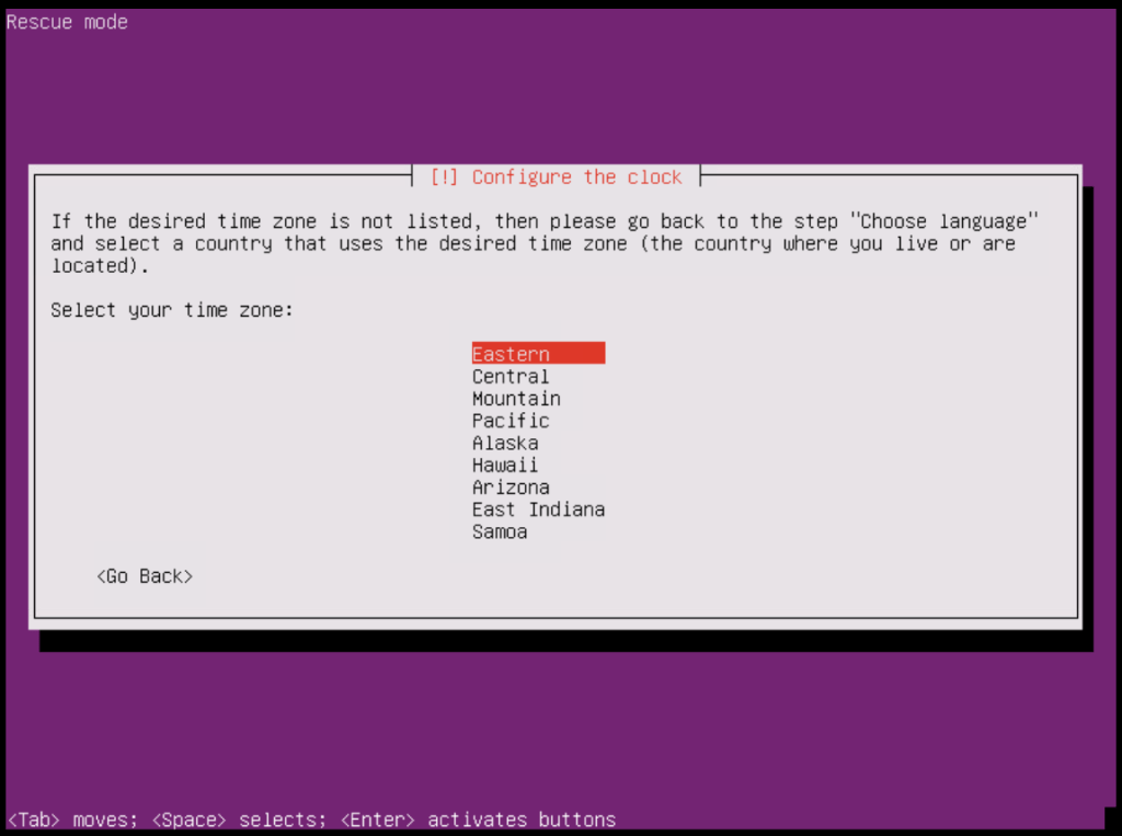 14. Configuration of the timezone does not need to be changed. Just accept the default and hit <ENTER>