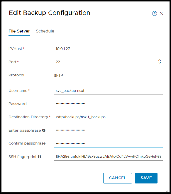 Note: SFTP backups with the NSX-T manager only support the following two cryptographic algorithm’s