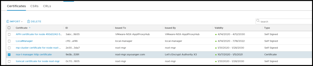 6) We will need to copy the certificate ID out from the ‘ID‘ column on the Certificates page as this ID will be used for the subsequent API calls to both validate the certificate and apply it to the NSX-T platform
